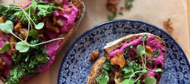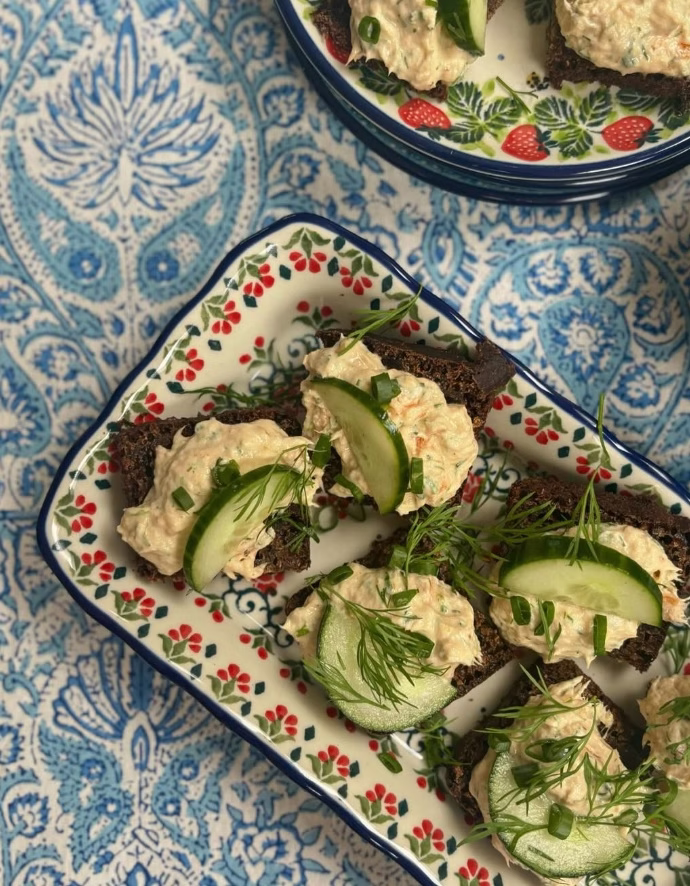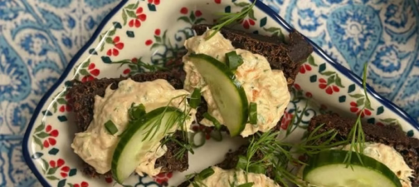 1. Sekoita tuorejuusto & punajuuret tahnaksi, mausta suolalla ja pippurilla, anna maustua jääkaapissa noin 30 minuuttia.