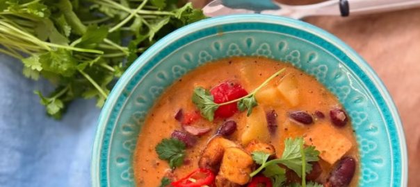 5. Maista. Lisää maun mukaan suolaa ja pippuria sekä päälle korianteria ja chiliä. Tarjoile hyvä leivän kera.